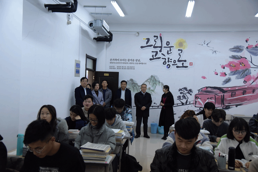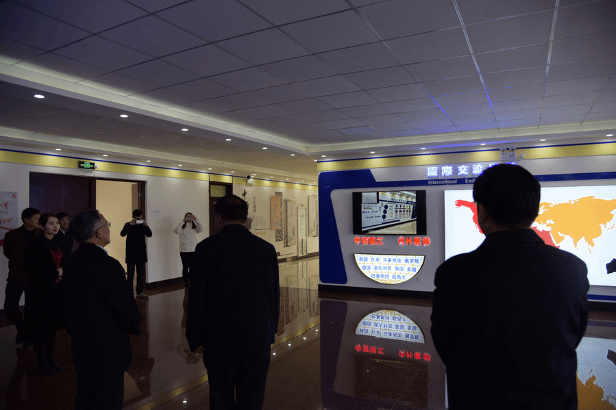 11月24日下午,市委常委、宣传部部长陈强,市宣传部常务副部长耿振华,市文化和旅游局局长尹慧萍等人,在永利yl23411官网党委书记陈北国,党委副书记吴亚平,副院长胡宪奎的陪同下,到永利官网国际交流学院进行调研。国际交流学院院长朱豫、副主任王琳以及全体教职工热情迎接。