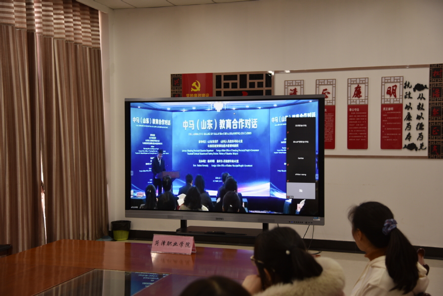为推动山东省与马来西亚的教育交流与合作,为高校开展校际交流与合作提供平台支持,在山东省教育厅、山东省人民政府外事办公室、马来西亚教育部职业技术教育和培训司指导支持下,12月22日,德州市人民政府外事办公室和德州学院联合举办中马(山东)教育合作对话活动,双方通过线下、线上相结合的方式进行对话交流。我院国际交流学院全体老师在朱处长的带领下以线上参与的方式参加了会议。