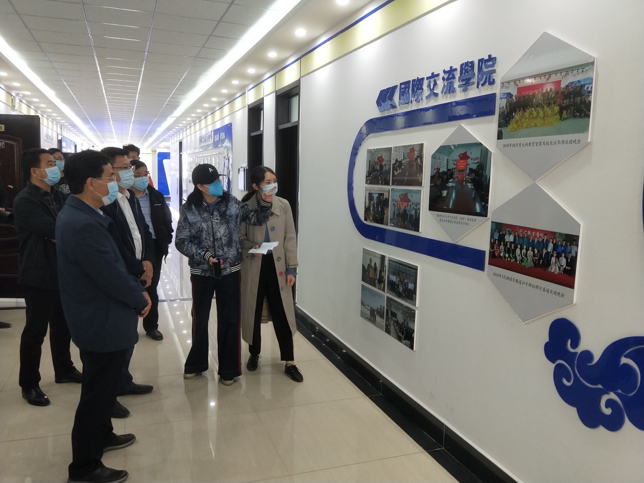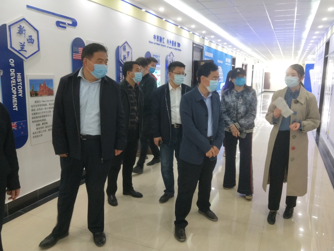 4月28日,山东省教育厅(省委教育工委)二级巡视员梁斌言一行到国际交流学院对疫情防控、教育教学等重点工作进行调研,市教育局总督学蒋银忠,院党委书记陈北国、副院长陈俊启、胡宪奎陪同。