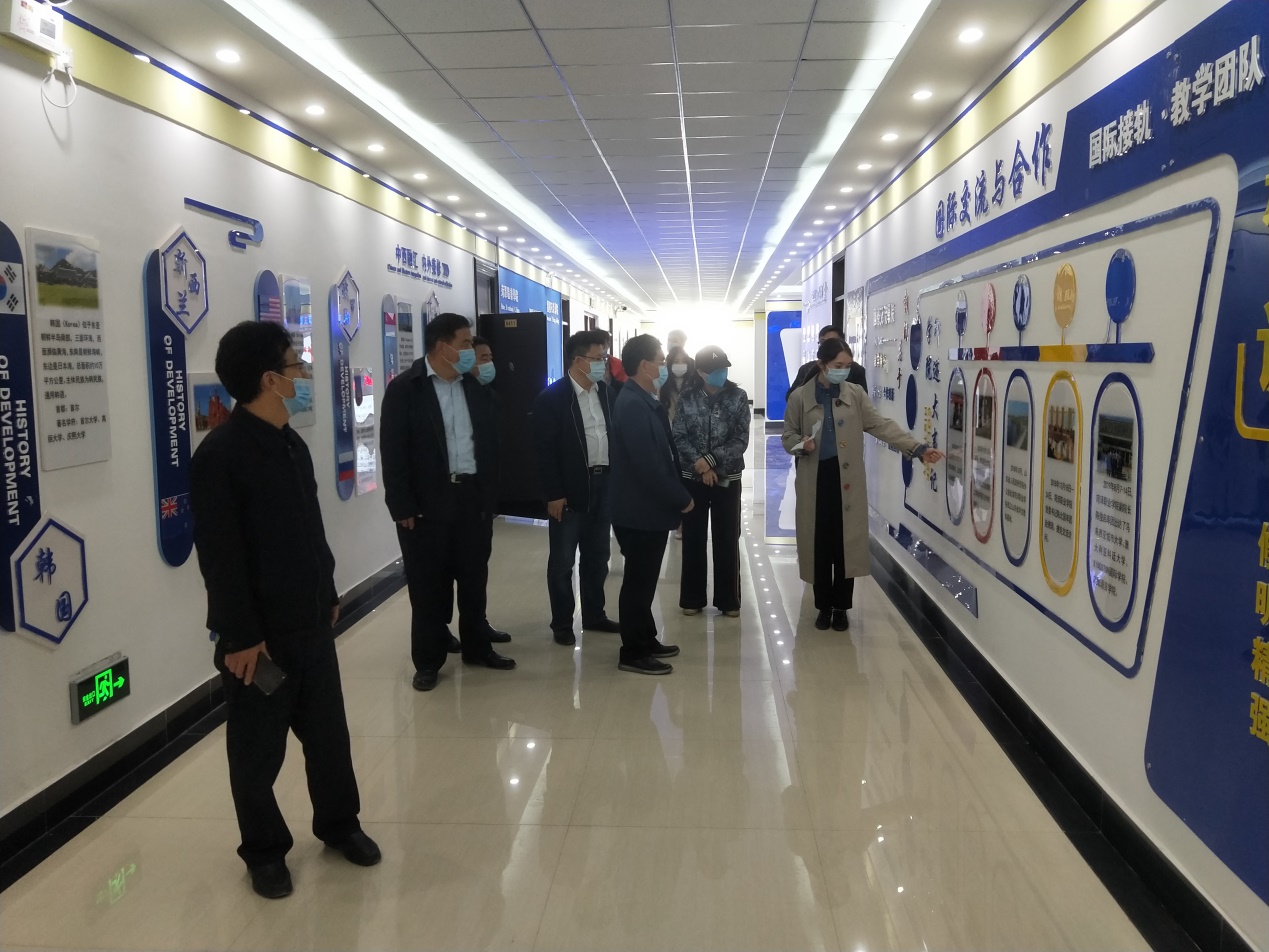 梁厅长一行深入了解了国际交流学院的发展情况,对师资情况、实训设备等问题与学院教师进行了交流。
