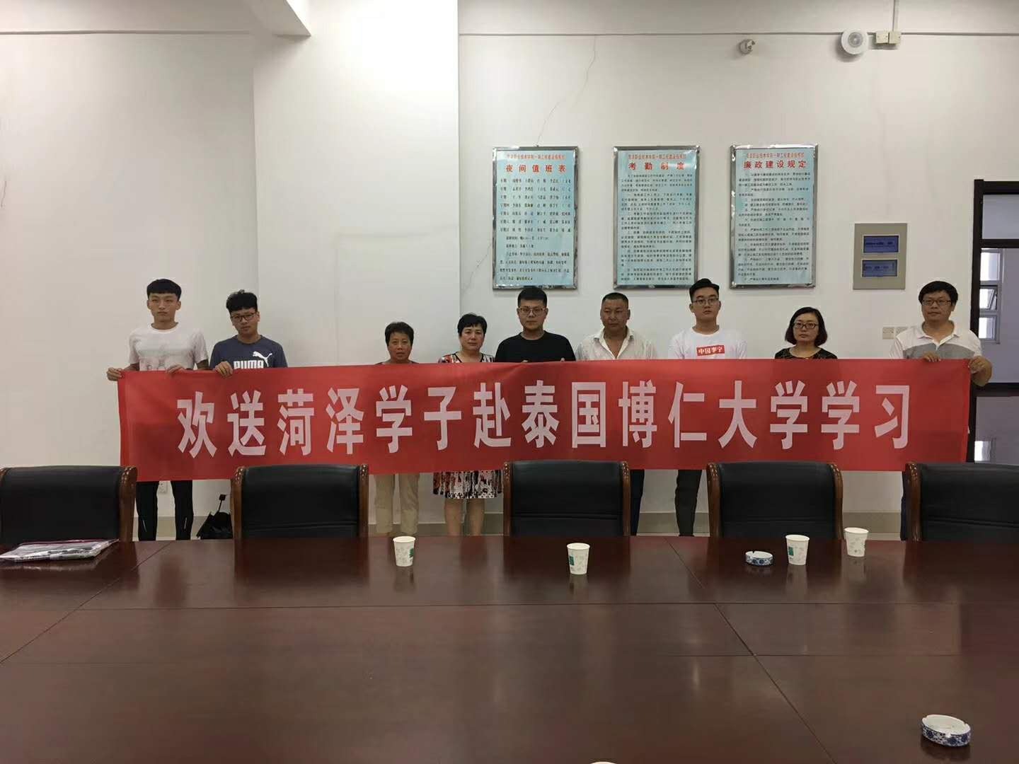 2018年8月18日上午,在永利yl23411官网六号楼二楼会议室召开了菏泽学子赴泰国博仁大学家长见面会,国际交流处处长朱豫、杜辉老师及泰国博仁大学山东地区负责人孔老师参加了此次会议,针对学生和学生家长提出的关于赴泰国留学的相关问题,都给予耐心细致的解答。