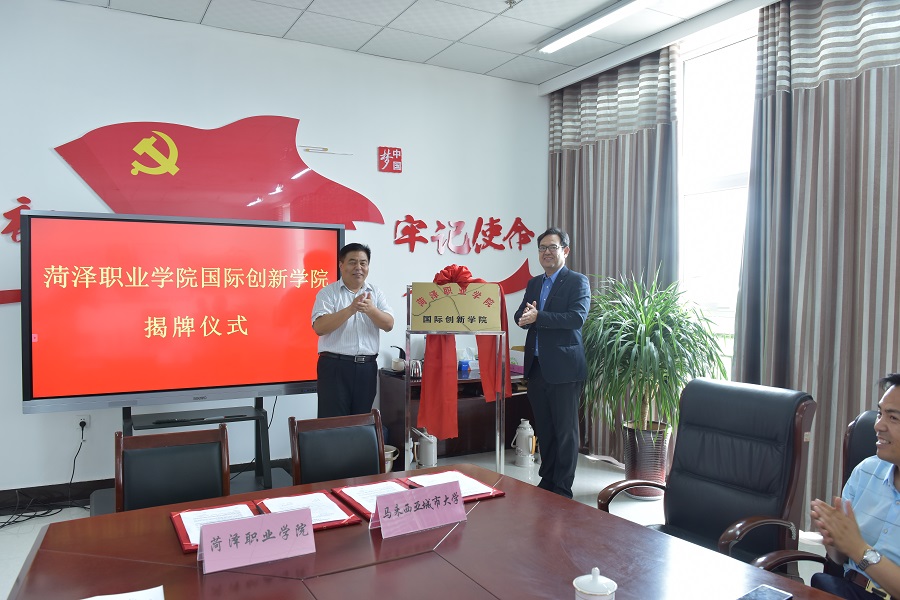 5月31日上午,马来西亚城市大学校长倪政立一行三人及山东省职业院校创业学院联盟理事长王世忠、山东科苑创业服务有限公司总经理王立杰莅临我院出席国际创新学院揭牌仪式。我院党委书记陈北国、党委委员胡宪奎、国际交流处处长朱豫、创新创业学院副院长宋玉金参加了本次揭牌签约仪式。双方首先对各自学校进行了详尽的介绍,随后就共建永利yl23411官网国际创新学院、两校合作发展规划、结合国家政策对外教育“一带一路”职业学院发展路线等事宜进行了深入的交流探讨。