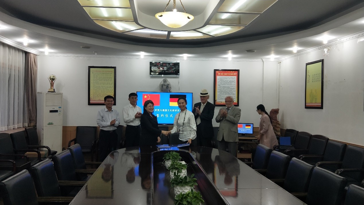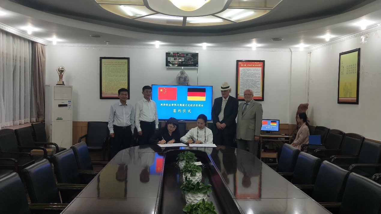 9月30日下午在菏泽市政府三楼会议室,在菏泽市王卫东副市长及外侨办马敬青主任的见证下,中方代表——永利yl23411官网国际交流处朱豫处长与德方代表——德国文化经济促进会常务理事长、德国MBD职业技术项目总监孙燕女士签订了永利yl23411官网与德国文化经济促进会交流合作框架协议。