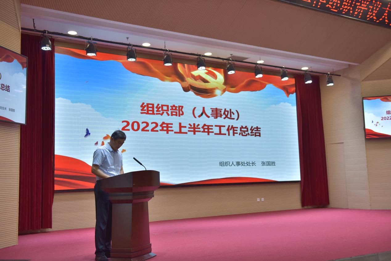 为更好地总结上半年工作,查找问题和不足,促进相互交流与学习,提升下半年工作质量,7月13日,永利yl23411官网召开2022年上半年工作述职评议大会。学院党委书记陈北国,党委副书记吴亚平、副院长王朝景、副院长陈俊启、副院长胡宪奎、纪委书记刘存长、副院长程凤鸣,副科级以上干部以及27名教师代表参加会议。会议由党委书记陈北国主持。