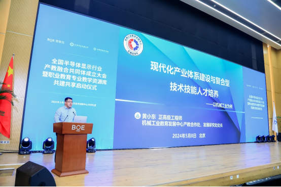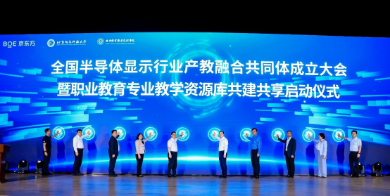 工业和信息化部教育与考试中心党总支书记、主任郝志强,京东方科技集团党委书记、执行副总裁、首席人事官冯强,北京信息科技大学党委副书记、校长郭福,机械工业教育发展中心副主任郑丽梅,甘肃机电职业技术学院党委书记、校长赵彦军分别致辞、讲话。会议宣读了《全国半导体显示行业产教融合共同体工作计划》,举行了职业教育专业教学资源库共建共享启动仪式。