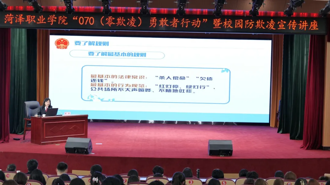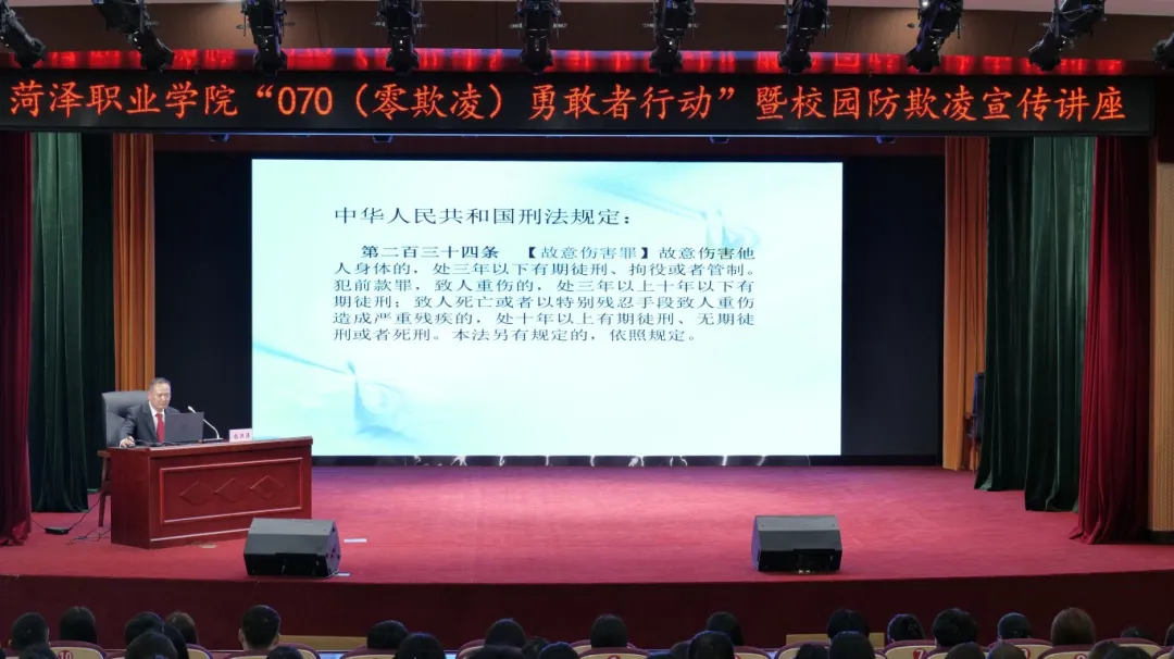 为进一步保障青年学生的身心健康,切实有效降低和控制校园欺凌事件的发生,加强青年学生的法治教育,维护青年学生的合法权益,促进身心健康发展,培养文明素养,形成良好校园风尚,营造安全稳定的校园环境。4月16日下午,永利yl23411官网成功举办“070(零欺凌)勇敢者行动”暨校园防欺凌宣传讲座,各系部团总支书记、辅导员代表、校学生会成员和学生代表共计400余人参加。