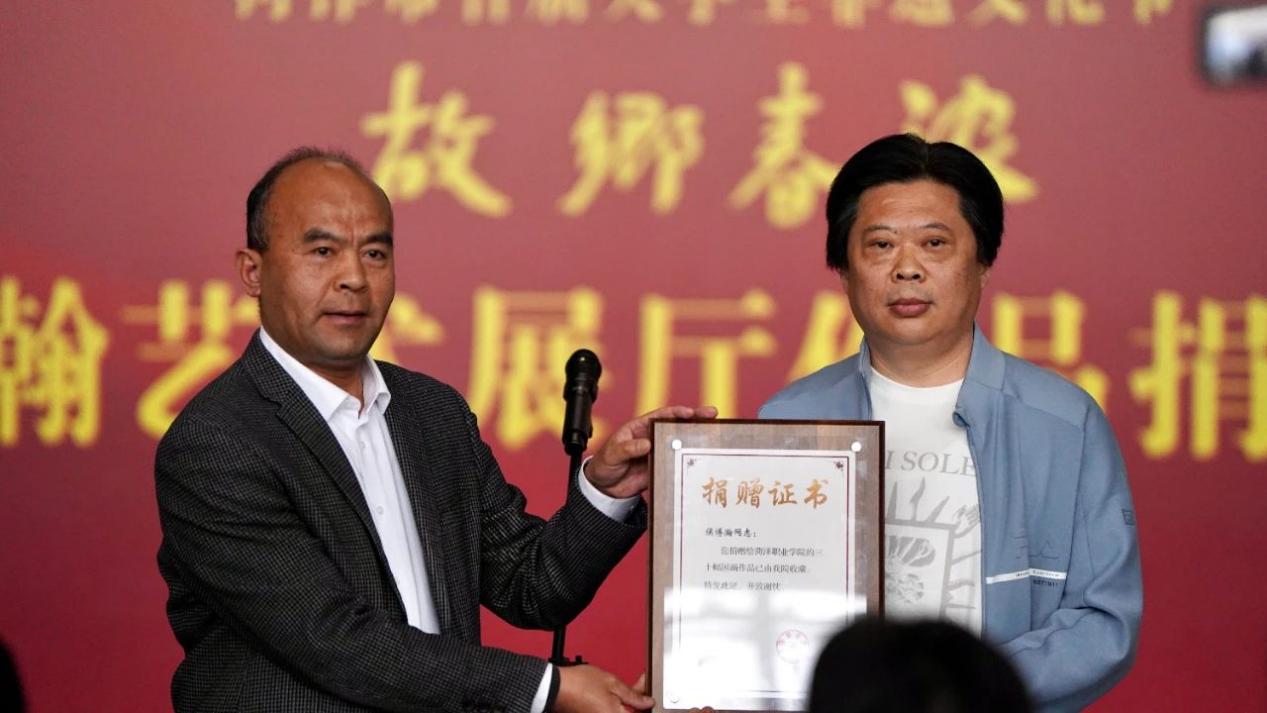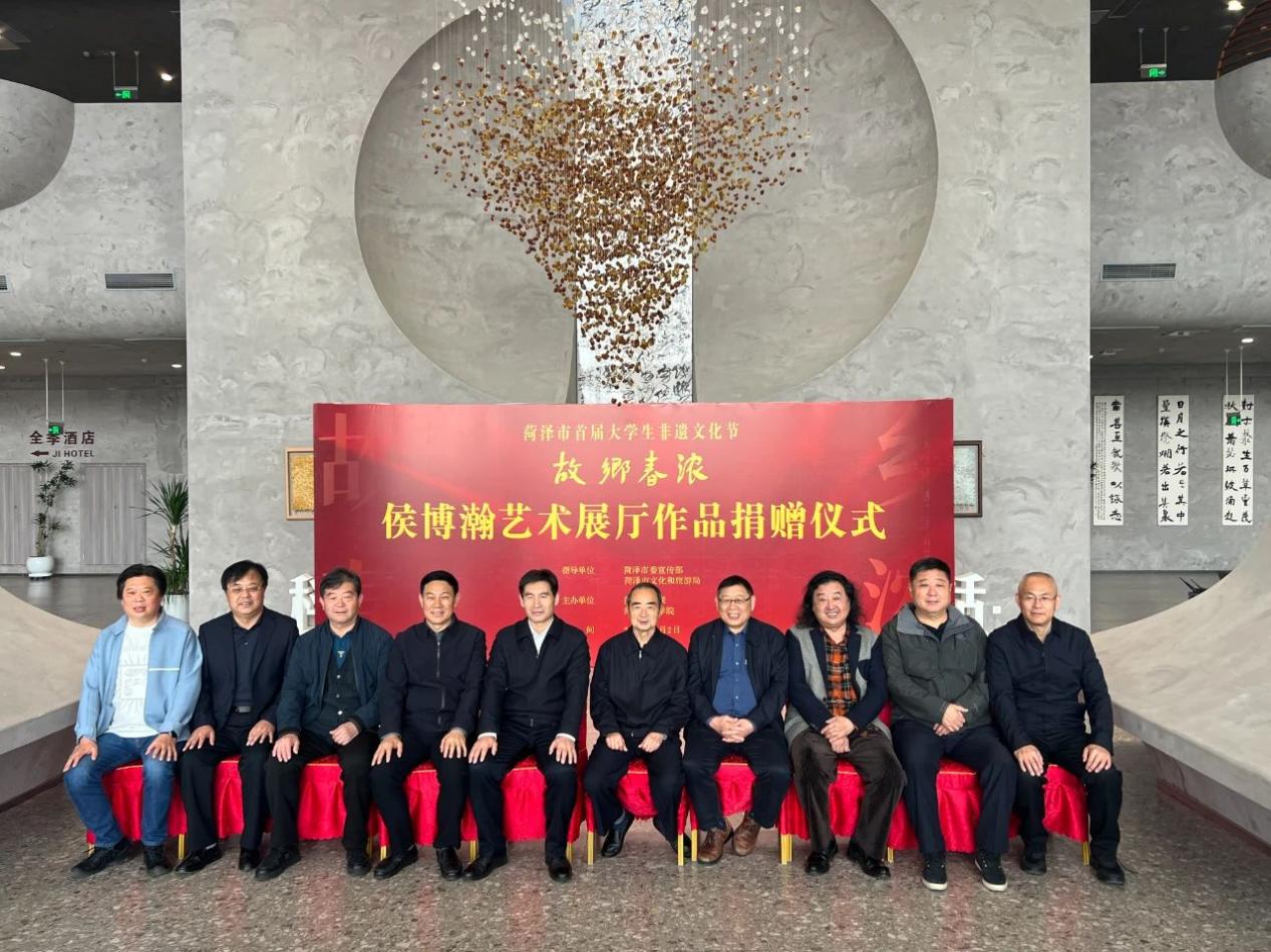 4月2日,“故乡春浓”——侯博瀚艺术展厅作品捐赠仪式在菏泽市产教融合大学科技园举行,侯博瀚先生将自己艺术展上的30幅国画精品无偿捐赠给永利官网。