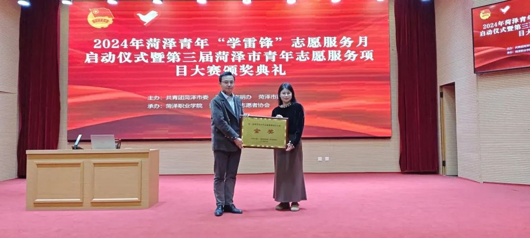 2024年3月5日,由共青团菏泽市委、菏泽市文明办、菏泽市民政局主办,永利官网承办的2024年菏泽青年“学雷锋”志愿服务月启动仪式暨第三届菏泽市青年志愿服务项目大赛颁奖典礼在永利官网成功举办!我院选报的育中教育学院“一朵小红花”送教入园项目获得决赛金奖,得到专家评委和参会领导的高度评价。