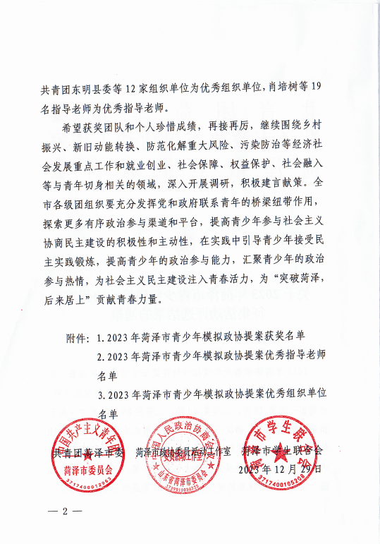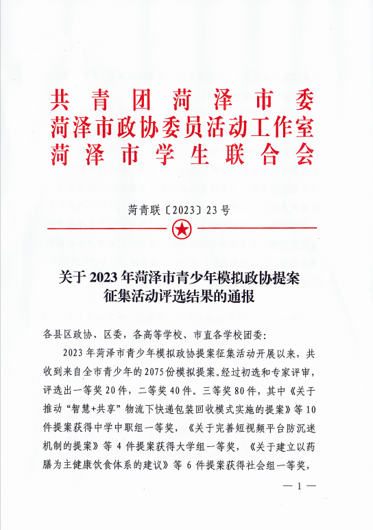 为引导广大青少年有序参与社会主义民主政治实践,准确理解全过程人民民主内涵实质,坚定信念跟党走,共青团菏泽市委、菏泽市政协委员活动工作室、菏泽市学生联合会联合开展了2023年菏泽市青少年模拟政协提案征集活动。