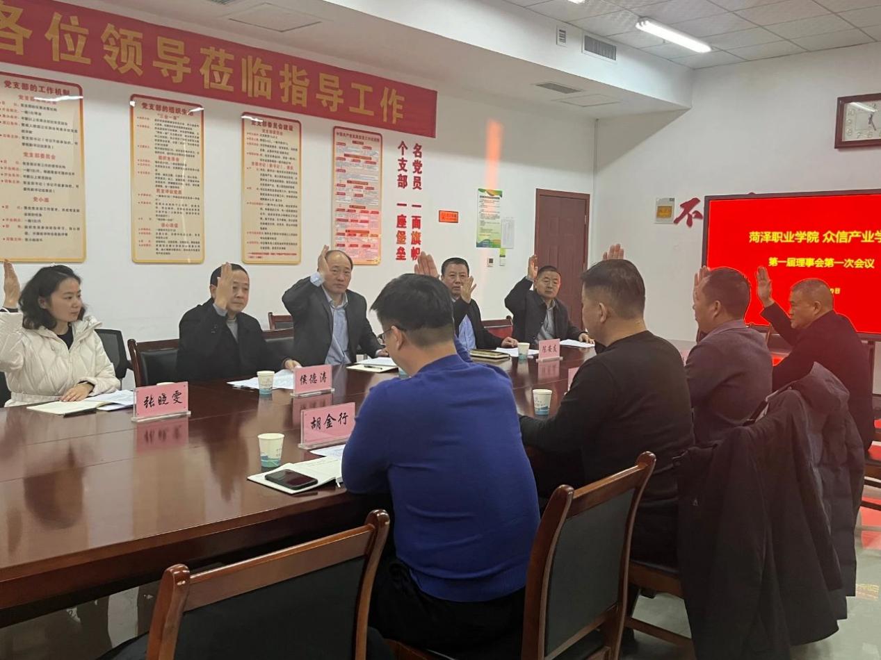 最后,理事长程凤鸣、副理事长王杰、独立理事陈安友分别代表学校、企业和教育行政部门做了讲话。大家一致表示,理事会每名成员将严格按照“永利yl23411官网众信产业学院理事会章程”所规定的各自的工作职责和程序要求,认真履行权利和义务,积极研究落实国家关于校企合作和产教融合方面的方针政策,大力整合社会各类资源,不断加大投资力度,努力提升办学水平和办学质量,为国家培养更多优秀技术技能人才,全力以赴把“永利yl23411官网众信产业学院”打造成为在省内乃至全国范围内具有较大影响力的产教融合的知名品牌,为菏泽经济社会发展做出重要贡献。