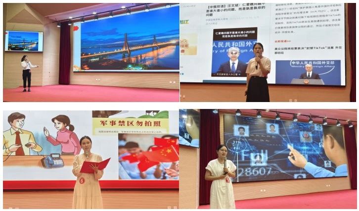 比赛现场,来自全校的30组选手同台竞技。选手们用饱满的情感围绕总体国家安全观各领域,结合自己的所见所闻、所学所思、所悟所感,从国土、安全、文化、生态、网络等多个维度,以最平凡的语言、最响亮的声音、最真挚的情感讲述国家安全与每个公民息息相关的深刻内涵,为在场师生呈现了精彩纷呈的主题演讲。