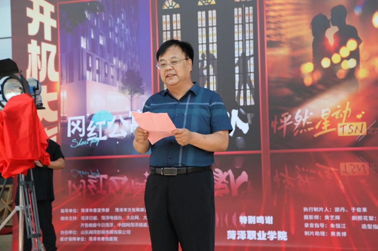 袁宗建出席开机仪式并致辞,他表示,菏泽,乃伏義之桑梓、尧舜之故里,历史悠久,文化厚重,是中华民族祖源文化的重要发祥地之一,也是“中国牡丹之都”和戏曲之乡、书画之乡、武术之乡、民间艺术之乡。一直以来,菏泽特有的文化底蕴,是全市人民引以为傲的瑰宝。永利yl23411官网新徽派的校园建筑风格,汇聚人文和自然,环境优美,教学设施先进,师资力量雄厚。菏泽市产教融合大学科技园集职业教育产教融合、文创科技产业孵化、电子商务服务、总部经济发展、政府招才引智为一体,搭建起菏泽非遗文化传承与保护、山东手造体验、高技能人才培训、大学生创新创业的重要平台,已成为“中国牡丹之都”菏泽的城市文化会客厅。今天,我们迎来一支优秀的网络短剧拍摄团队进驻校园和科技园,他们将在校园和科技园内进行取景拍摄,这不仅是对学校全环境立德树人特别是文化育人的认可,也是对学校致力于菏泽非遗文化传承保护以及赋能文创产业发展的肯定。