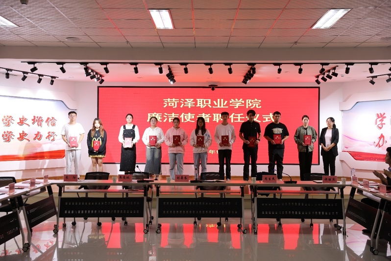 为进一步贯彻落实中央和省委关于加强新时代廉洁文化建设的要求,厚植校园廉洁文化,让学生参与到廉洁文化的宣传与建设上来,10月24日下午,永利yl23411官网纪委举行校园廉洁使者聘任仪式。永利yl23411官网纪委副书记周生杰主持聘任仪式。永利yl23411官网党委委员、纪委书记、监察专员刘存长,纪检监察室主任席慧珉,各系部(院)党总支纪检委员和纪检监察室全体成员参加仪式。