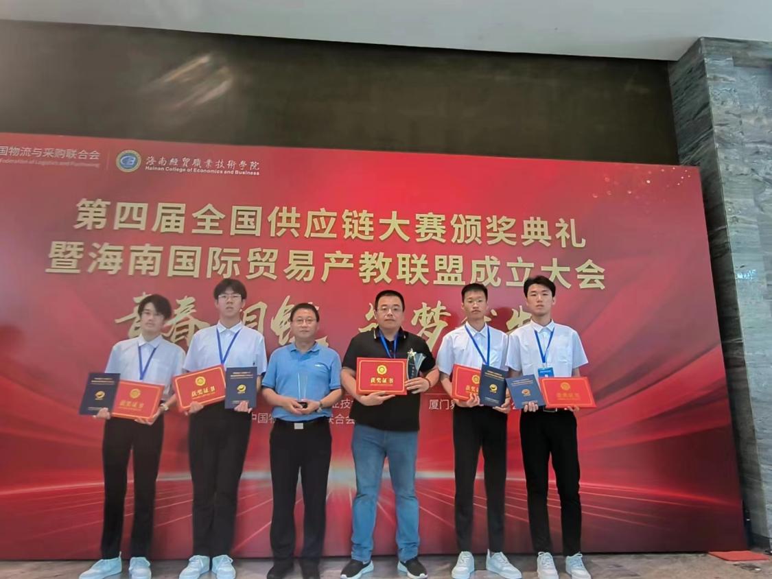 6月9日至10日,第四届全国供应链大赛总决赛在海南举行。我院商贸物流系(网络直播学院)高冰、杨钊、金浩、张伦赫四名同学组成的“凝心聚力”队经过校园赛、初赛、复赛层层选拔,最终入围全国总决赛。在学院领导高度重视和大力支持下,在系党总支书记陈兆刚与吴志航老师的指导下,我院参赛学生发挥出色、脱颖而出,最终斩获全国总决赛二等奖的好成绩,永利yl23411官网被授予优秀组织奖。永利yl23411官网学生代表队也是此次山东省高职院校中唯一在全国总决赛获奖的学生队伍。