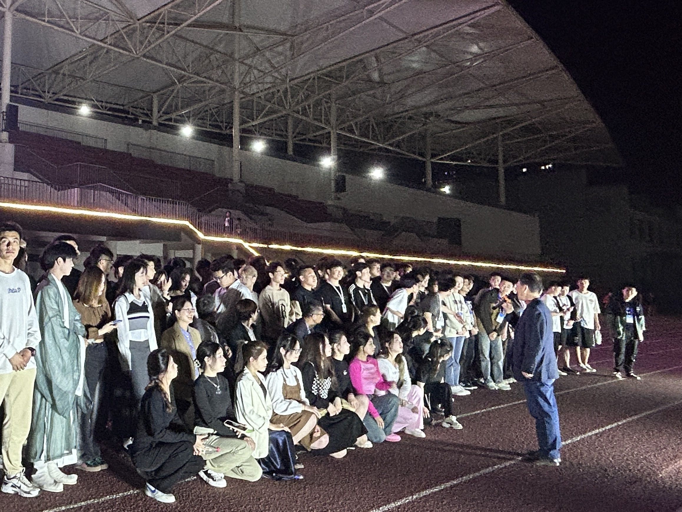 在演出正式开始之前,同学们就早早欢聚在体育场,他们带着满腔的热情围坐在草地上,乘着春风和暮色,伴随着呼声和掌声,在万众期待之中迎来了激情四溢的草地音乐节!