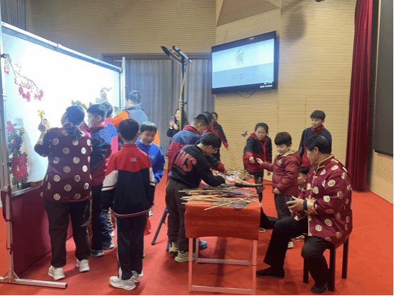 在本次研学活动中,冯克献大师为学校学子展示了定陶皮影戏的多样魅力。从滑稽幽默、令人忍俊不禁的《骷髅戏》,到根据流行音乐自编自导、充满现代气息的《公鸡跳舞》,再到传统剧目《龙争虎斗》和《游龙戏凤》,演员们以灵巧的双手,在幕布后演绎出一幕幕精彩绝伦的戏剧故事,让观众在光影交错间领略传统文化的深厚底蕴。在观赏了精彩绝伦的皮影戏表演后,学生们更是亲自参与皮影制作,在冯大师的悉心指导下,体验古老艺术的独特魅力。