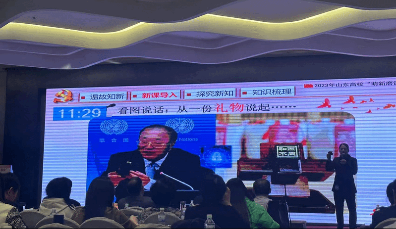 山东省思政课“萌新”磨课会是由山东省教育厅指导、山东省学校思政课教学指导委员会等单位联合主办、全省入职三年以内青年教师参加的全省大型思政教学类赛事,比赛邀请了全国和本省思政领域权威专家担任评委。本次赵变丽老师参赛课程为《形势与政策》,赵老师以习近平外交思想为核心,运用KWL学习法,从为什么、是什么、怎么做、怎么看四个环节,清晰而生动地讲述了全球发展的中国方案,得到了现场专家和老师们的一致好评。