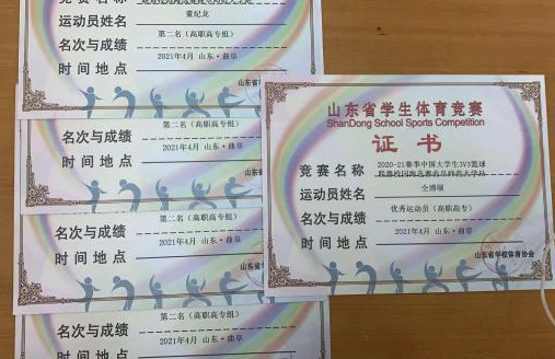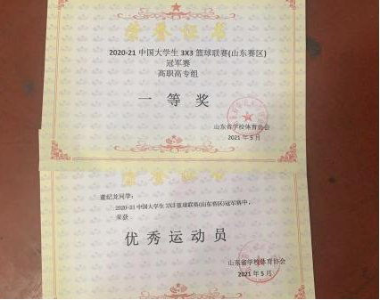 2021年5月7日-9日,在2020-21中国大学生3×3篮球联赛(山东赛区)冠军赛中,我院基础部体育组秦传斌老师带领物流系仝博硕,机电系文全鑫、董纪龙,交通系胡昌钰四位同学,获高职高专组一等奖。