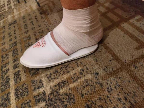 在冠军赛中,高水平队伍角逐对抗非常激烈,我方队员文全鑫、胡昌钰接连脚踝扭伤,他们为了学校荣誉,经医生处理扎上绷带重返赛场,文全鑫、胡昌钰的勇敢、拼搏精神和极强的集体荣誉感赢得了在场所有人的称赞。