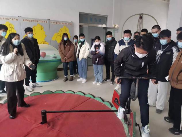 在科普讲解员的带领下,同学们被有特色、有意义的科普展品吸引,纷纷参与互动,亲身体验。