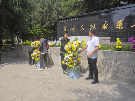 在烈士公墓、革命烈士纪念塔前,大家追思先烈,感受革命胜利的来之不易。在羊山革命烈士公墓前教师代表向革命英雄敬献花篮。