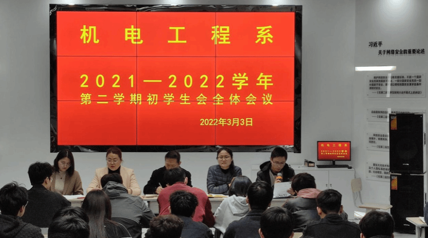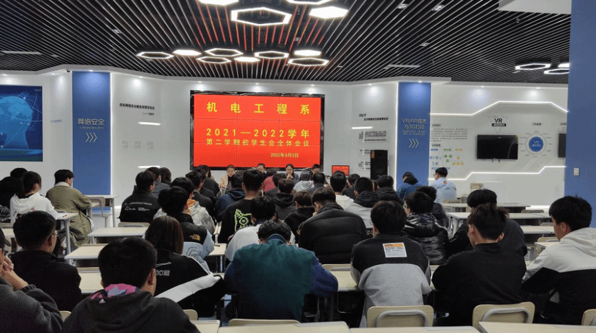 2022年3月3日,机电工程系在人工智能楼二楼展厅召开2021—2022学年第二学期第一次学生会全体会议。机电工程系党总支副书记、系主任张善雨,机电工程系党总支副书记寻素君,副主任周佩以及分管学生工作的老师出席了本次会议。