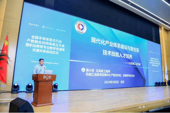 工业和信息化部教育与考试中心党总支书记、主任郝志强,京东方科技集团党委书记、执行副总裁、首席人事官冯强,北京信息科技大学党委副书记、校长郭福,机械工业教育发展中心副主任郑丽梅,甘肃机电职业技术学院党委书记、校长赵彦军分别致辞、讲话。会议宣读了《全国半导体显示行业产教融合共同体工作计划》,并举行了职业教育专业教学资源库共建共享启动仪式。