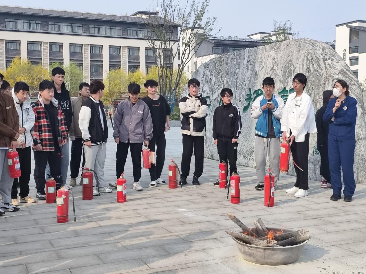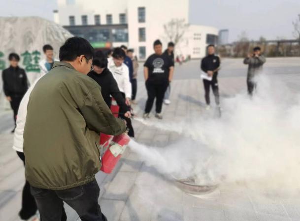 消防安全知识培训结束后,又组织学生在工匠广场进行火灾应急演练。