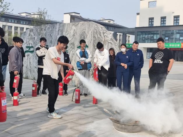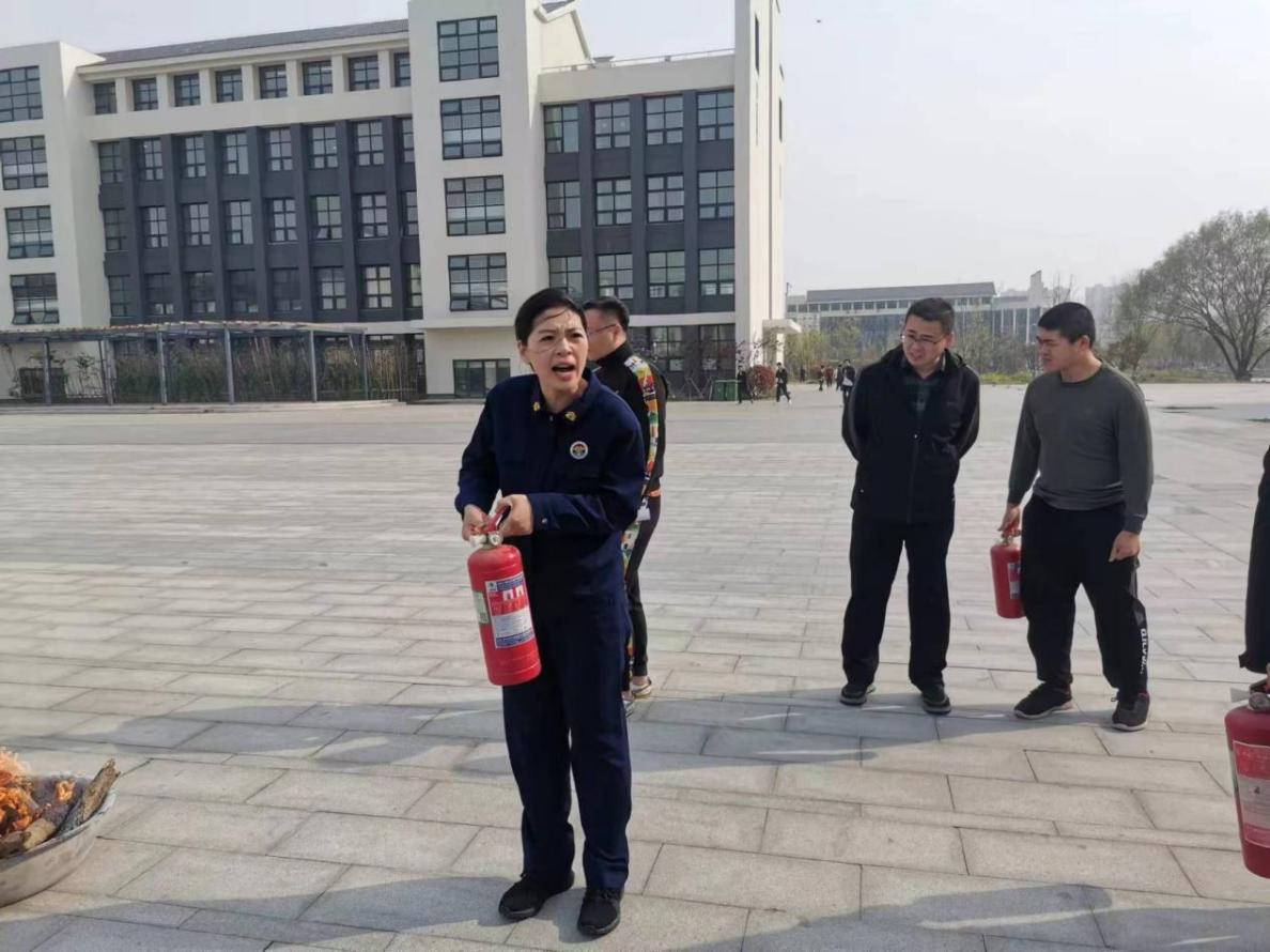 菏泽市消防救援支队综合指导科宣传员张艳现场为同学们详细讲解灭火器的使用方法和灭火注意事项,并为同学们做了示范。