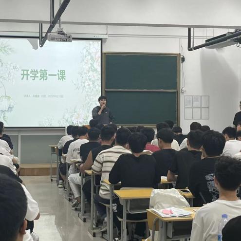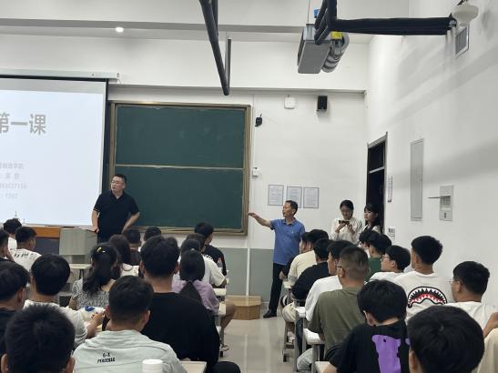 为了帮助新生尽快适应大学生活,顺利、平稳、有效地实现从中学阶段到大学的过渡,完成角色转变、融入班级集体,23级各班分别于9月10日晚自习开展第一次班会,9月11日上午开展新生入学教育。党总支书记张善雨与院领导班子深入各教室查看班会与入学教育开展情况。