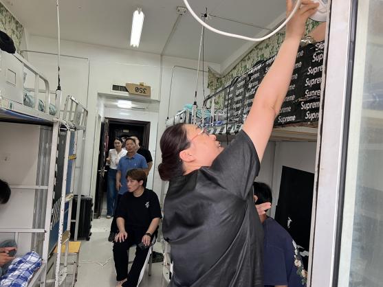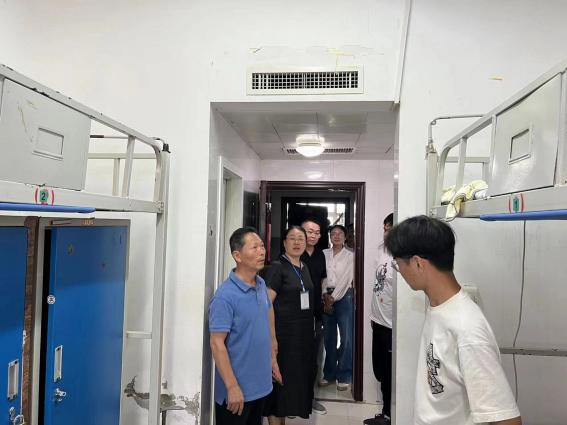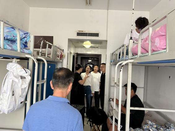 9月10日下午蒋震智能制造学院党总支书记张善雨与院领导班子带领23级辅导员、班主任深入宿舍,深入学生宿舍走访,了解23级新生的思想动态,提醒同学们要共同创建整洁文明的生活环境。在查寝的过程中,张善雨与学生们亲切交流,针对学生的问题给出针对性的建议,嘱咐同学们有问题及时找辅导员解决处理,并且鼓励大家要增强自律意识,主动适应新学校、新环境、新生活,充实未来几年的大学生活,做好新一阶段的人生规划。