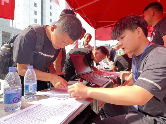 迎新志愿者们耐心的给新生、家长们回答各种问题,严格按照报道流程。报道登记、一卡通发放、钥匙领取、行李搬运等相关工作稳步进行。工匠广场上,志愿者们冒着高温,为新生做好指引、帮忙拎行李,充分发挥学生志愿者战斗堡垒作用和先锋模范作用。“点对点”服务,面面俱到,各项工作有条不紊开展,为新生报道保驾护航。