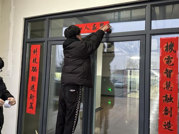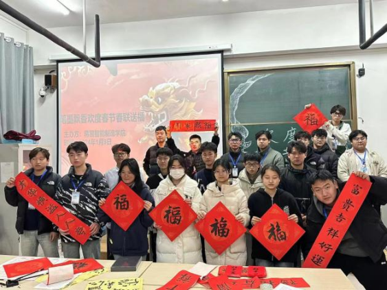 迎弘扬中华优秀传统文化,营造浓厚的节日氛围,向全院师生传递美好的关爱与祝福。蒋震智能制造学院于1月9日下午,在1103教室举行“踏着时代的节奏,带着新年的祝福”写春联送祝福活动。蒋震智能制造学院党总支书记张善雨、副书记寻素君、副院长周佩、副院长张作川以及学院各位老师同学们参与活动并向广大师生送上新春祝福。