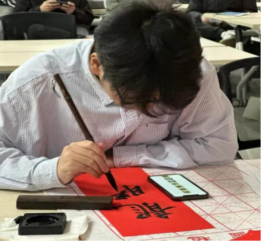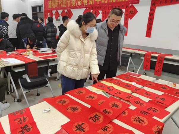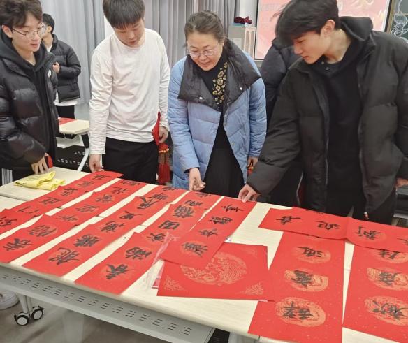 活动现场翰墨飘香,为即将到来的新春佳节营造了欢乐祥和的喜庆氛围。老师们带领学生以饱满的热情执笔挥毫,写下了一个个福字、一幅幅春联,以中国书法蕴含的文化之美向全院师生表达了最真挚的祝福。