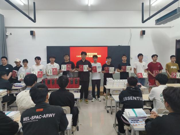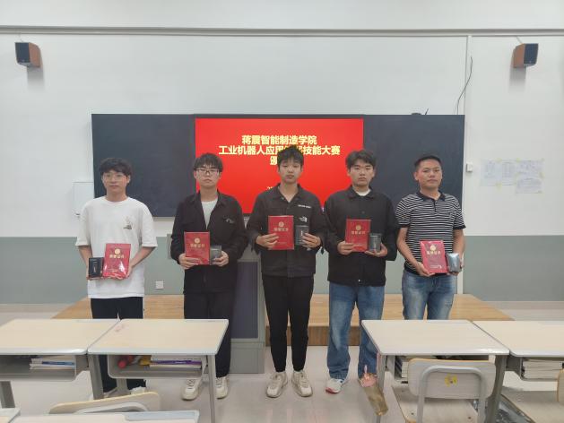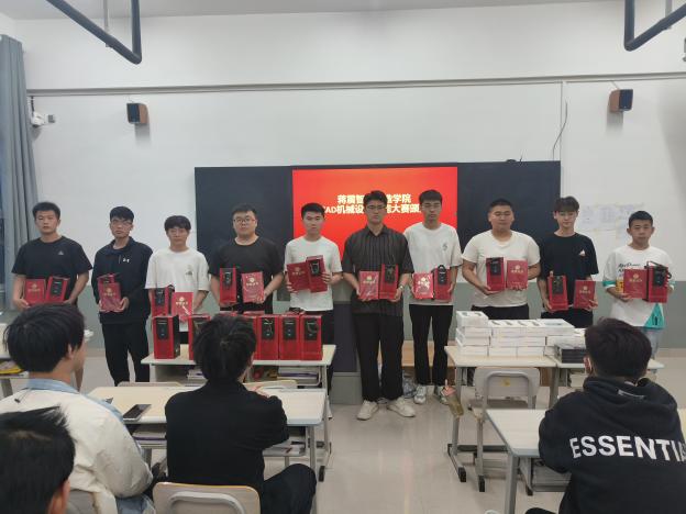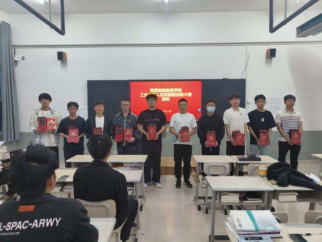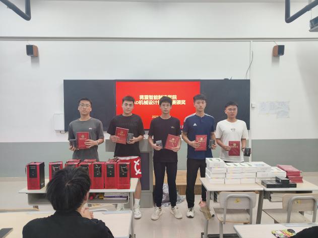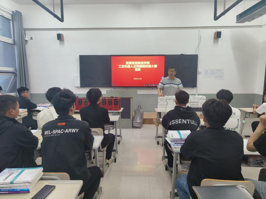2023年5月24日,蒋震智能制造学院对在工业机器人应用编程和AutoCAD机械设计师两项比赛中表现优异的学生进行颁奖。