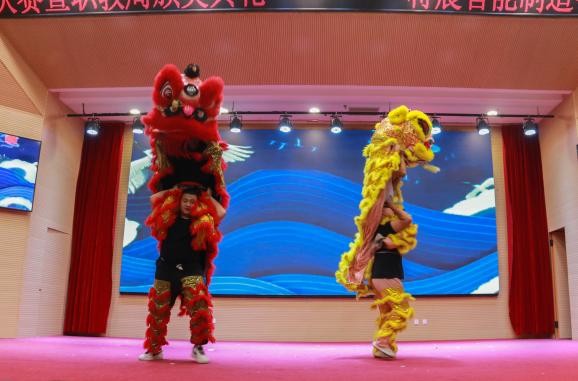 比赛正式开始前,意风舞狮社团带来精彩的舞狮表演。各队员之间默契配合,运用起伏、翻滚、腾跃等技术使龙狮的形态、神态活灵活现。现场气氛活跃,比赛在阵阵掌声中拉开了帷幕。
