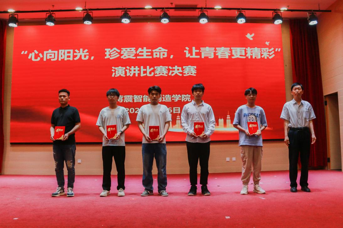 6月6日下午,“心向阳光,珍爱生命,让青春更精彩”主题演讲比赛决赛在大学科技园举行。学院党委副书记胡宪奎,学院党委委员、副院长王朝景,纪委副书记周生杰,宣传部部长周世竞,学工办副主任郭忠义,蒋震智能制造学院党总支书记张善雨以及蒋震智能制造学院各位领导、老师出席本次活动。