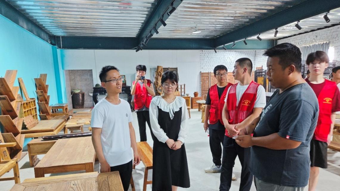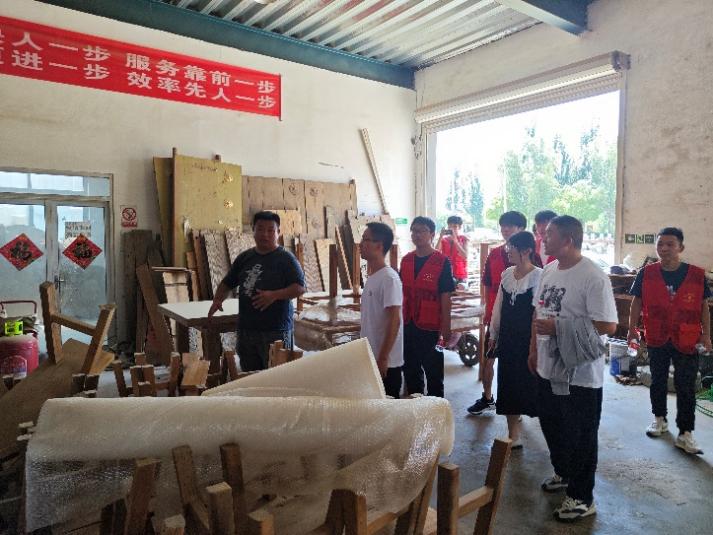 同学们在老榆木家具城负责人的带领下,对张营镇周边多家家具加工企业进行了实地考察,详细了解了木材原材料的来源、家具的生产制造工艺以及企业的生产经营状况。