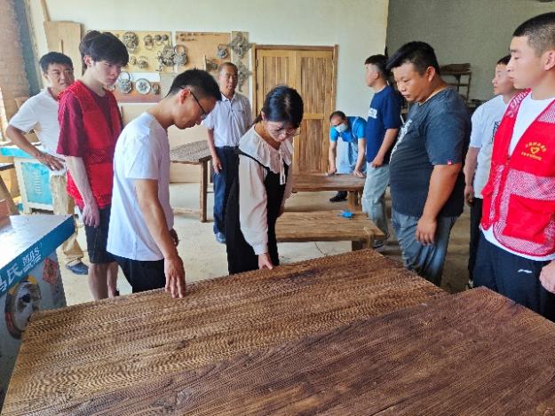 调研活动中,同学们提出了企业发展对当地环境影响的问题,通过与企业负责人的探讨,了解到可以通过对乡村废旧木材尤其是老榆木进行合理回收利用,变废为宝,避免了废旧木材被随意扔掉或直接挖坑填埋这些简单粗暴的处理方式,减少了资源浪费,最大程度地保护环境。