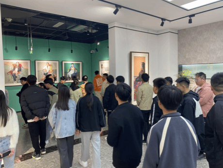 在办公室老师带领下,同学们首先参观了万花湖美术馆,该馆现为杨参军老师的画作展览——《家园》,这个展览体现了较高的艺术水平,学生们在前期有接触过相关知识的学习,所以现场讨论积极,反响热烈。
