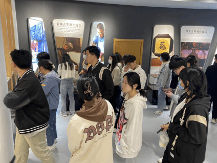 最后,进入到非遗物质文化遗产区域,看着属于菏泽本土的一个个充满智慧结晶的陈设品,同学们充满了对文化的渴望探究以及对传统的深入了解。通过老师的介绍,原来这些非遗物质文化遗产拥有着那么深刻的内涵和久远的历史意义。