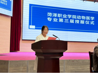 胡书记讲到校企合作专业可以更多的为学生提供资源,动物医学专业发展和就业前景广阔,今天看到动医专业的同学们朝气蓬勃的神态,可以想象今后兽医这个行业未来一片光明。今天的仪式不仅是为了提升同学们的专业素养,更是在同学们的成长历程中添上了重要的一笔!
