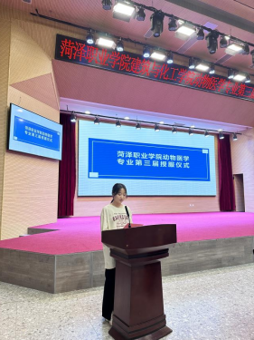 22级学生代表夏淑贞发言:动物医学是一门应用性和实践性很强的学科。要成为一名合格的职业兽医,仅仅靠热爱是不够的,还需要付出更多的努力。