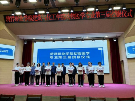为培育学生健康向上的人文科学和积极进取的创新精神,展现动物医学制服的神圣性,更好地传承动医精神,4月13日,建筑与化工学院动物医学专业“心随辛动 医熠生辉”第三届授服仪式于科技园报告厅顺利举行。永利yl23411官网党委副书记胡宪奎、建筑与化工学院周迎军书记、建筑与化工学院王立云书记、山东铁航生物科技有限公司林振国教授等相关教师莅临本次仪式,为动物医学专业2022级113位学生进行授服。