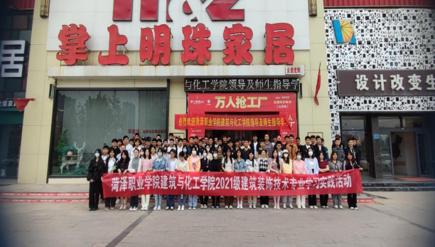 春风和煦,杨柳依依,建筑与化工学院2021级建筑装饰工程技术专业百余名学生在专业教师王如华、王玉敬、刘圣硕老师的带领下到菏泽掌上明珠家居装饰公司及欧亚达装饰材料市场进行线下学习实践活动。