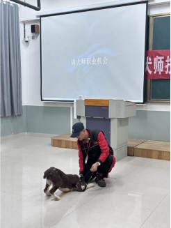 建筑与化工学院动物医学专业于2号教学楼2103教室开展了为期两天的宠物训导与美容实训课。山东铁航生物科技有限公司特别邀请山东小野宠物集团训犬部负责人王刚老师、美容部负责人王永超老师进行现场实践教学,2022、2023级全体学生参加。