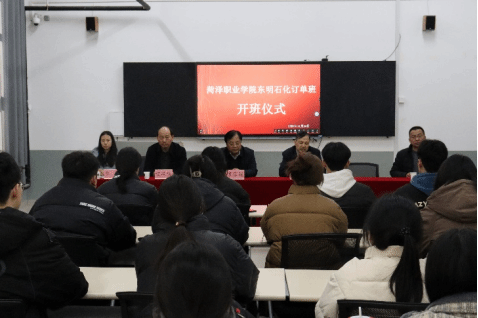 袁宗建院长在讲话中指出东明石化是菏泽市乃至山东省的知名企业,具有很雄厚的实力,希望同学们在后续的学习中能够刻苦钻研专业知识,提升业务能力,努力提高自身素质,珍惜订单式培养这一次难得的机会。