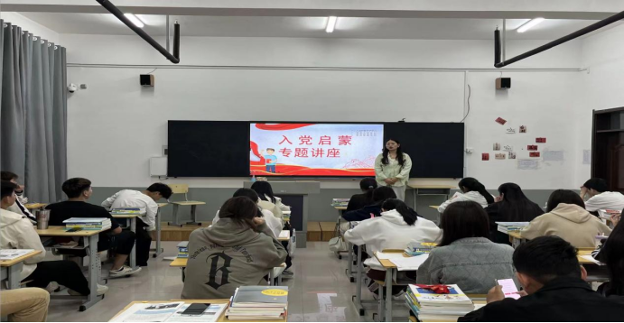 党总支选派新生辅导员从对党的认识、端正入党动机和如何向党组织靠拢三个方面向新生展开宣讲。