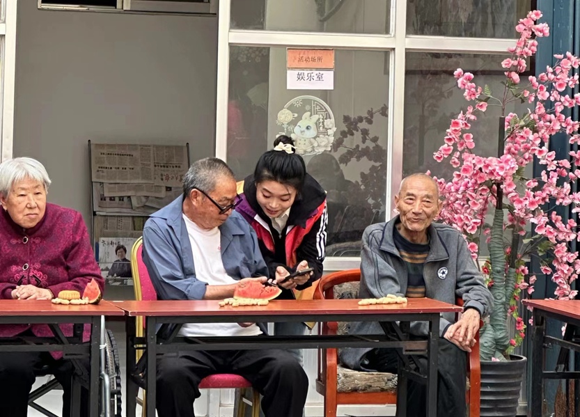舞蹈专业和音乐专业的学生志愿者们还表演了节目,与老人进行互动。轻快动听的歌曲,飘逸潇洒的舞姿,引得现场不时响起阵阵掌声。