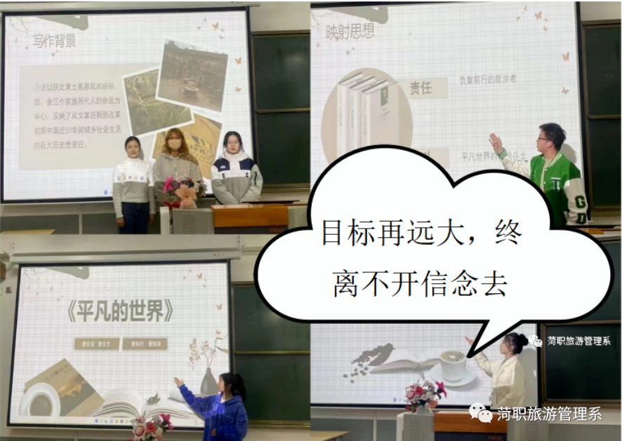 听完讲解,同学们展开了热烈的讨论,感受到路遥的平凡的世界不是惊涛骇浪的传奇,而是平凡而宁静的最真实的生活。大家结合《平凡的世界》的写作背景、映射思想等方面资料,发表了自己在本次读书会上获得的新的感悟。